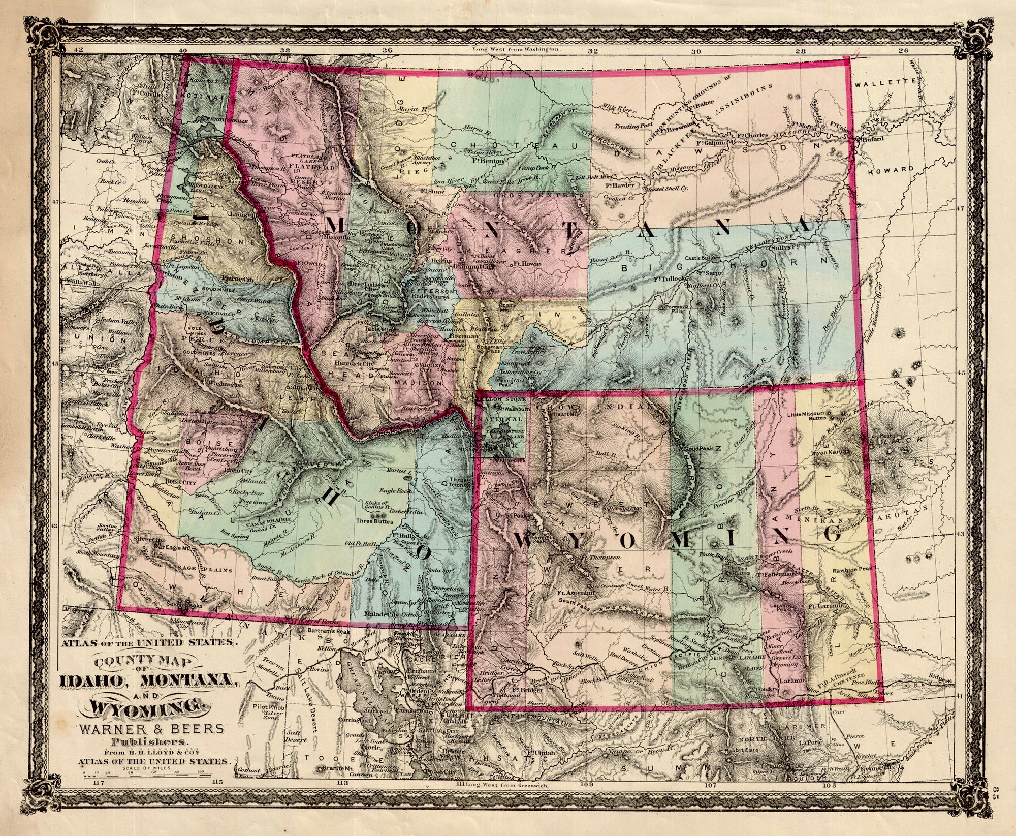 MT., ID., WY.) County Map of Idaho, Montana and Wyoming โ The Old
